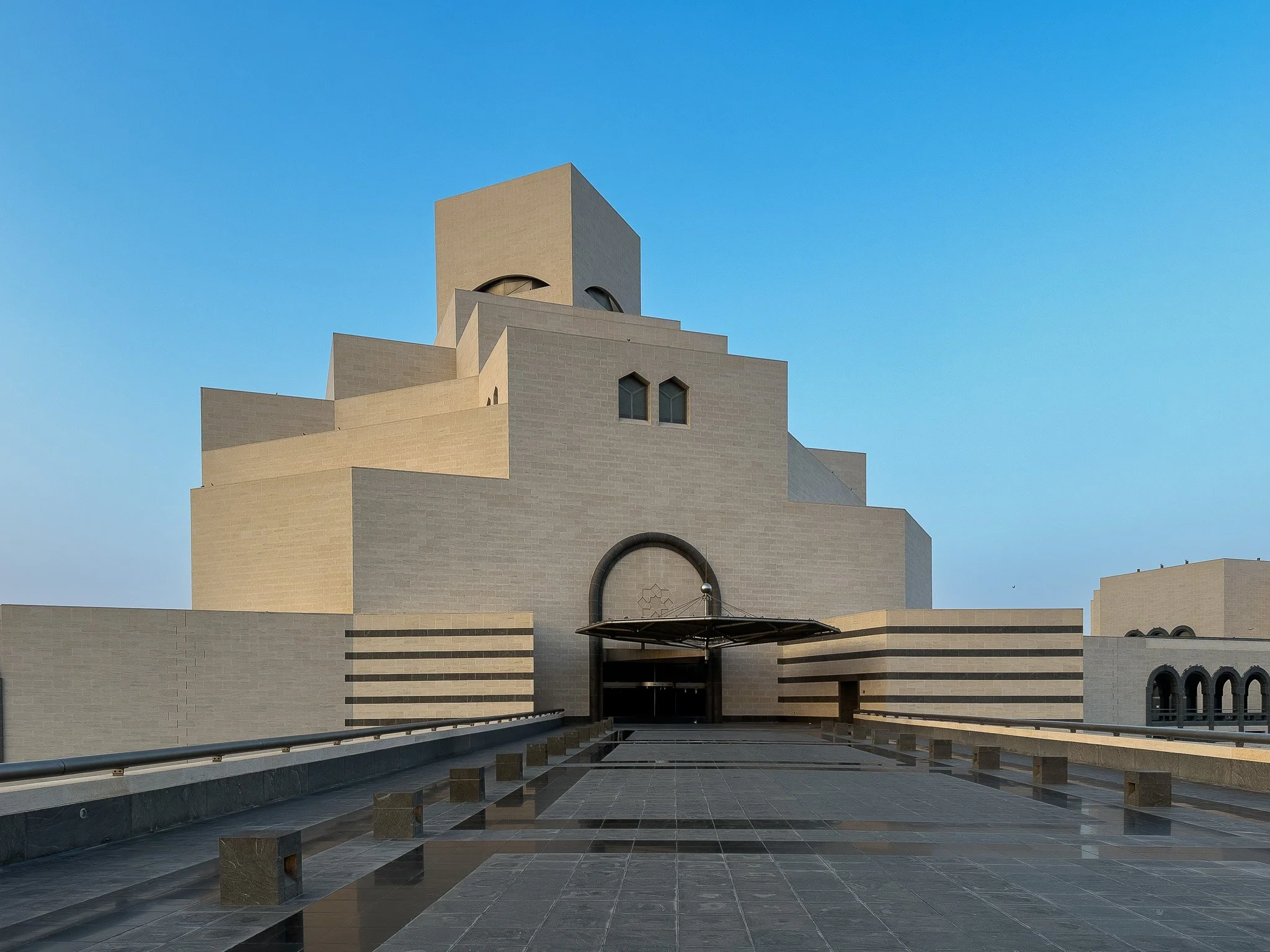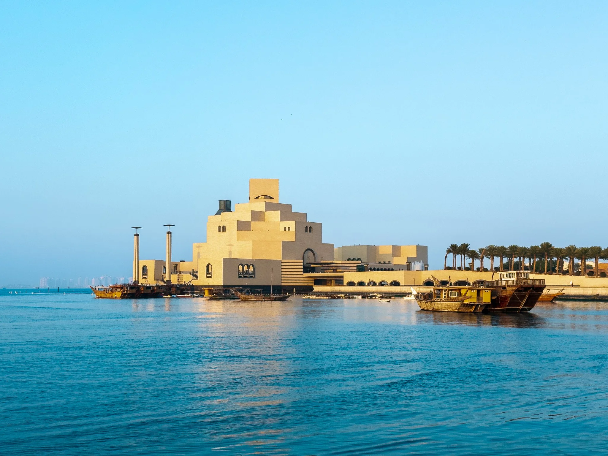 Designed by I.M. Pei, this museum distills centuries of Islamic architecture into geometry, proportion, and light. Its placement on the water allows the building to be read clearly from every angle.