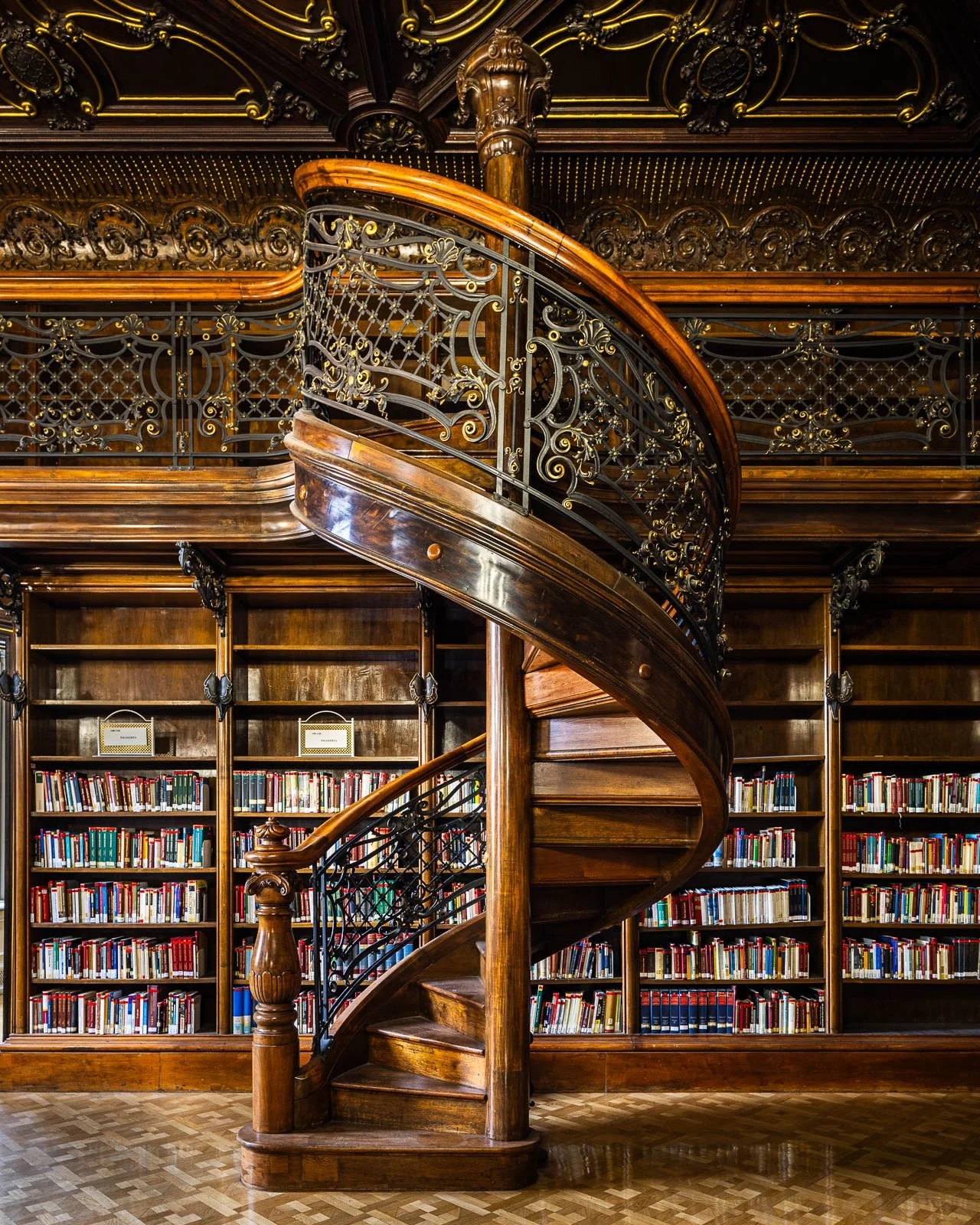 We visited the library for a private tour. The highlight of the library is the three spiral staircases.