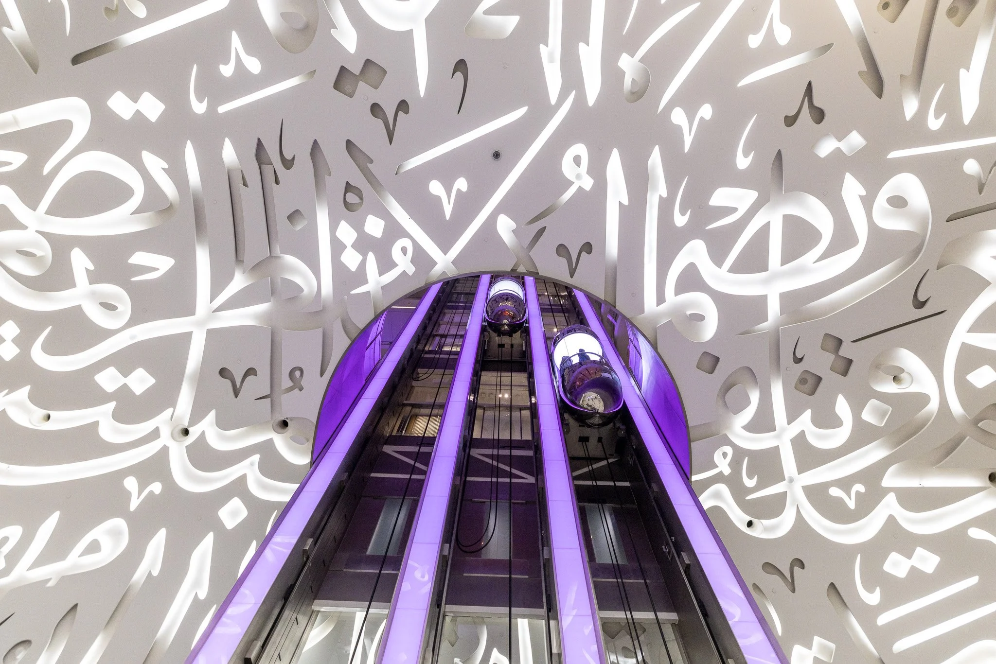 The library opened in June 2022 and is a great daytime location in the Al Jaddaf area. The building is shaped like an open book, and it photographs beautifully from almost any angle.