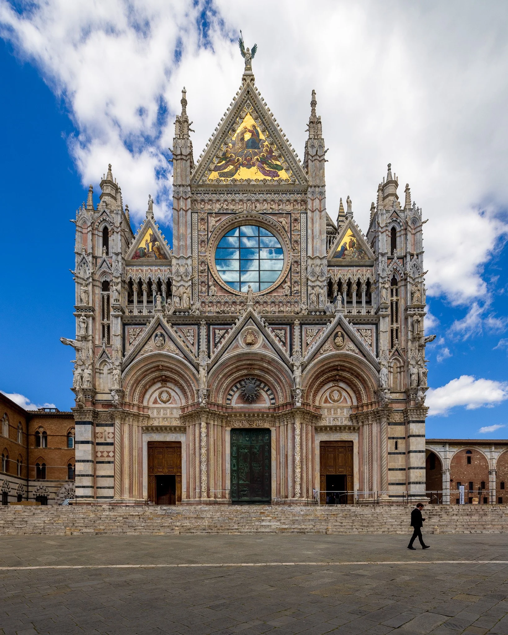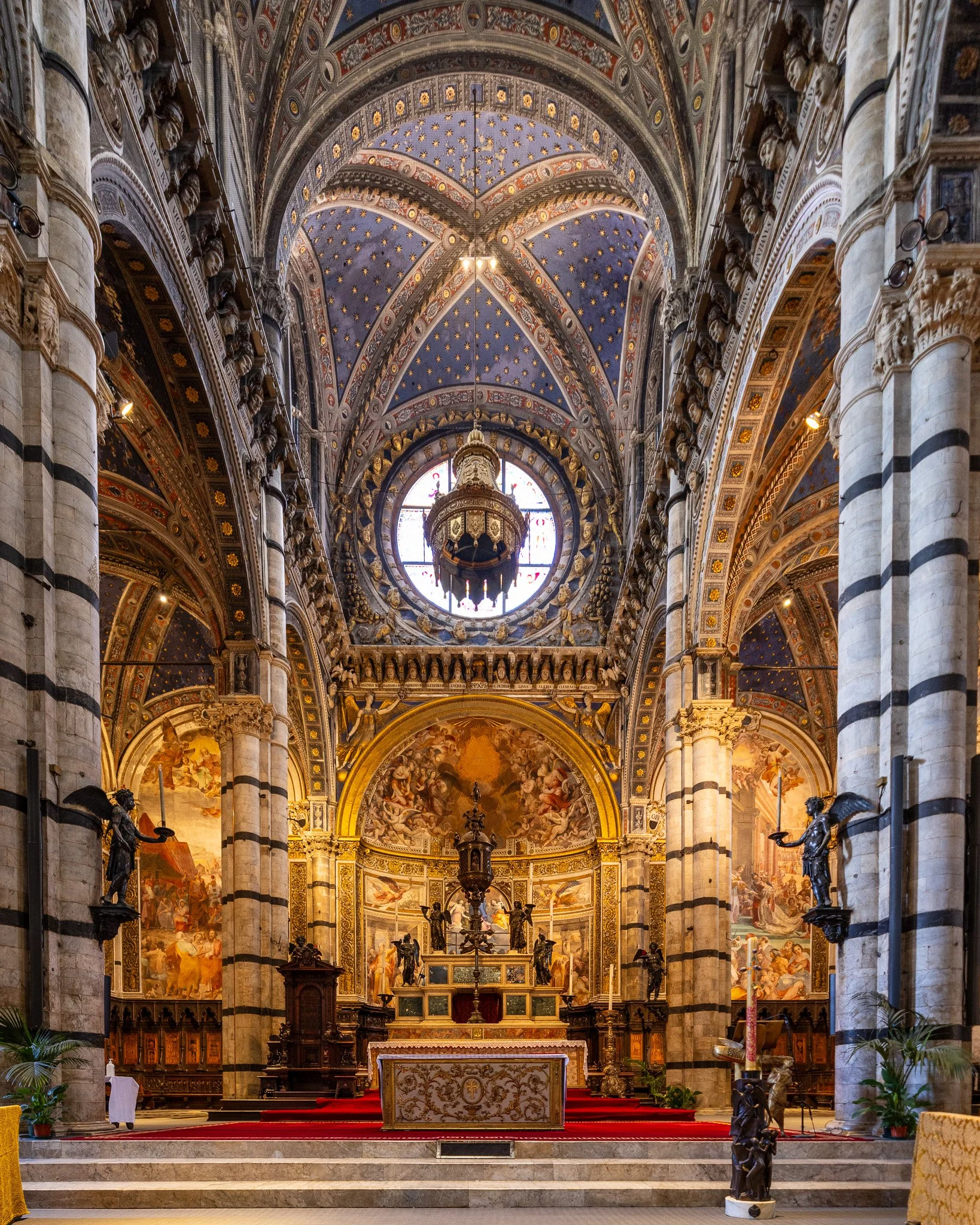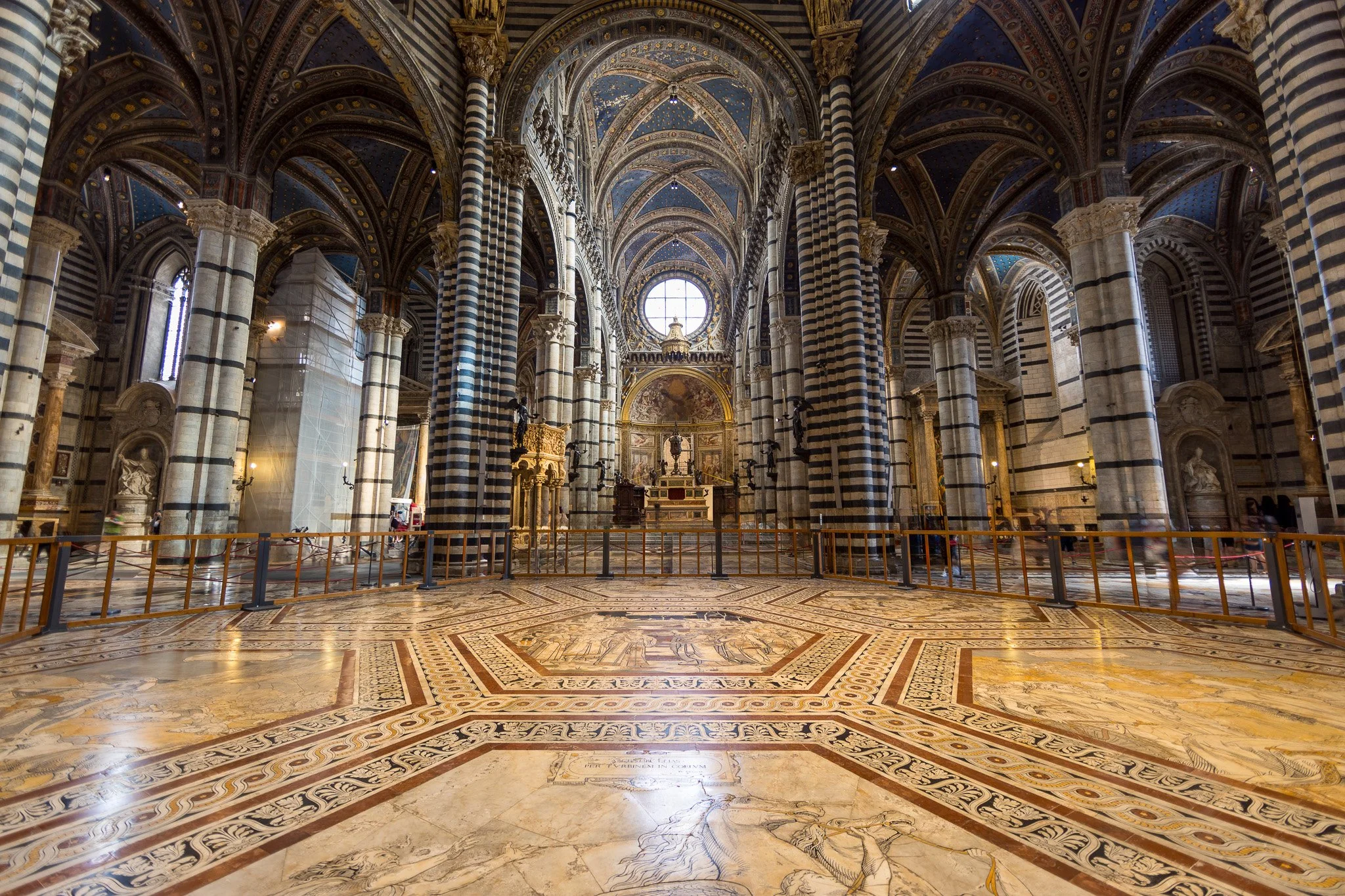 The interior is equally stunning, featuring works by renowned artists like Donatello, Bernini, and Michelangelo. Additionally, its elaborate marble floor mosaics, depicting biblical scenes and allegories, are considered among Italy's most ornate and extensive.