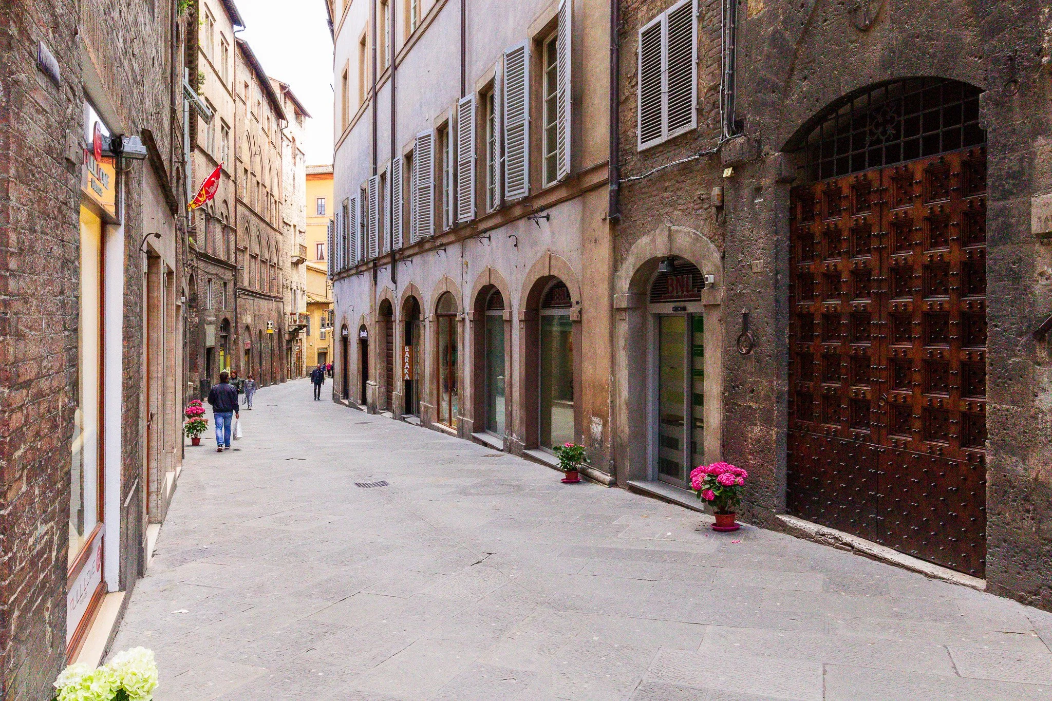 There is a nice lookout point near the Porto Salaria along Via Diacceto towards the Basilica Cateriniana San Domenico and the steep streets below. There are some shops, cafes, and restaurants here.